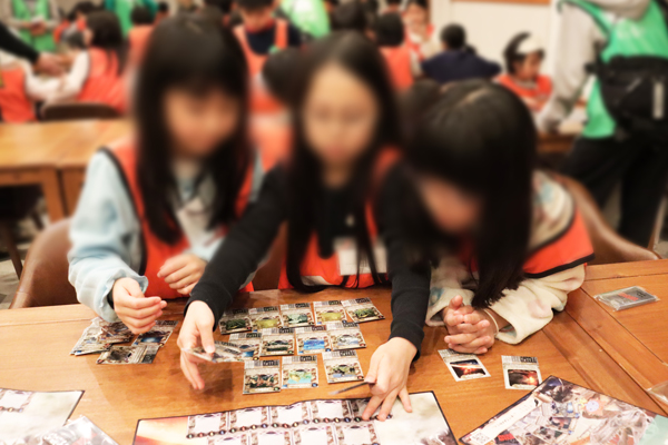 絶滅動物が描かれたカードを揃えてホモサピエンスの誕生を目指すゲームや、地質年代を覚える歌などを通して、自分たちが生まれるはるか昔にどのような生き物が存在していたのか、そして絶滅がなぜ起こるのかについて、楽しみながら理解を深めていきました。